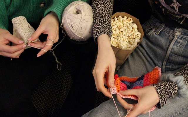 3. Stricken im Kino: Einmal im Monat laden Luisa und Judith Menschen in ein Kino in Wien ein. Sie kommen zum Handarbeiten und Filmeschauen. Junge und alte Leute machen mit. Dabei entstehen neue Freundschaften und ein Gefühl von Gemeinschaft.